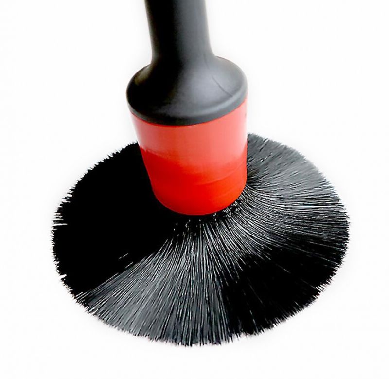Кисть - синтетическое волокно, обладает повышенной прочностью и гибкостью, что в свою очередь положительно сказывается на рабочей поверхности. Подходит для мокрого и сухого использования. Зачастую данные щетки предназначены для удаления пыли с колес, вентиляционных отверстий, щелей между сиденьем и прочих труднодоступных мест.
