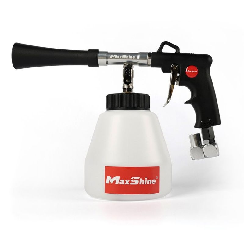 Призначений для швидкого та ефективного очищення салону автомобіля за допомогою повітря та хімії, що чистить. Пістолет підключається до повітряного компресора і під високим тиском розпорошує засіб для чищення в щілини та інші важкодоступні місця, до яких не дістатися вручну.